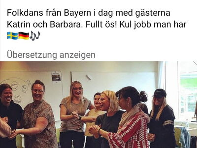 Praktischen Austausch gab es im Musik- und Theaterunterricht: Die Miesbacher Musikpädagoginnen lernten gemeinsam mit den schwedischen Studierenden einige schwedische Kinderlieder kennen – vom „Varmkorv-Blues“ (Hot-Dog-Blues) bis zur schwedischen Variante von „Töff-töff-töff die Eisenbahn“. – Im Gegenzug brachten sie den schwedischen Studierenden den bayerischen „Kikeriki“ als Mundartlied, Kreis- und Paartanz bei, mit der Erkenntnis: schwedische Hähne krähen „Kukrukuu!“