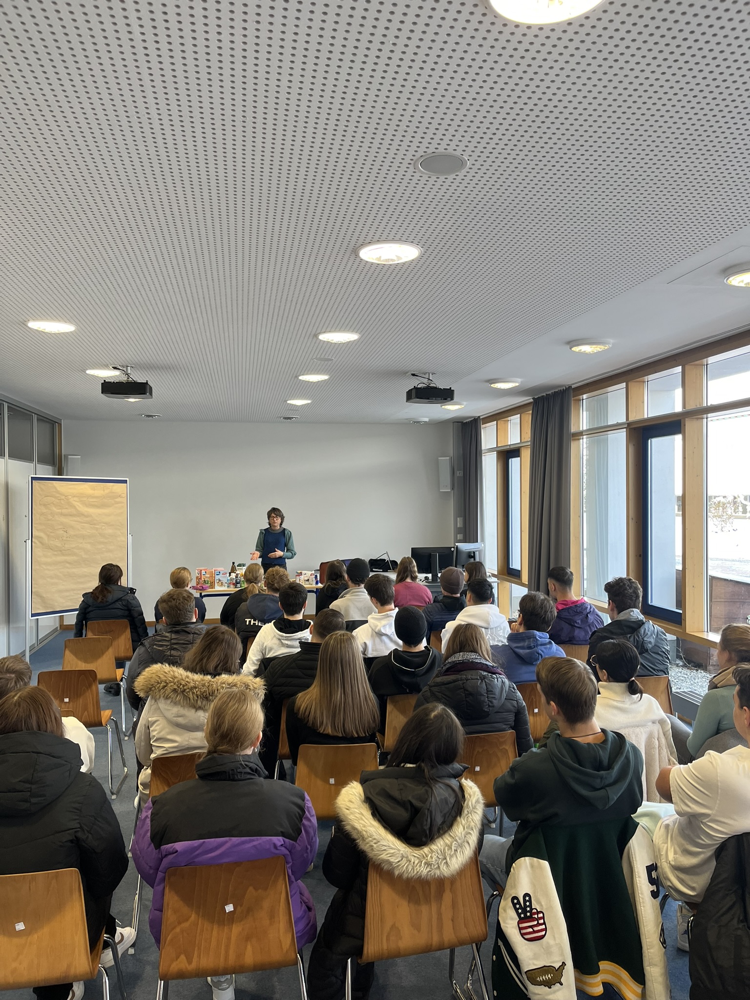 Ein zentrales Thema war auch der Weg eines Produkts vom Hersteller bis zum Supermarktregal und die gesetzlichen Vorgaben, die dabei erfüllt werden müssen. Die Schülerinnen und Schüler erhielten somit einen Einblick in die komplexen Abläufe, die hinter den Produkten im Einzelhandel stehen.