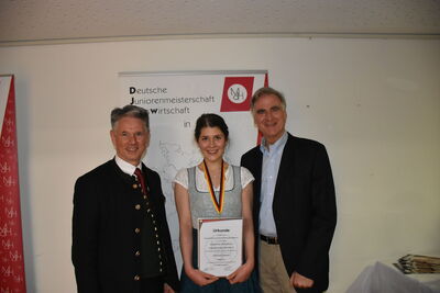 Im Rahmen einer Abschlussveranstaltung am Samstag, u. a. mit den Ehrengästen Frau M. Noichel (MdEP), Frau Minsterialrätin A. Seidl vom Bay. Staatsministerium für Ernährung, Landwirtschaft und Forsten, Herr Landrat O. von Löwis (Bild rechts), Herr Bürgermeister Dr. G. Braunmiller (Bild links) sowie Frau C. Illsanker und Frau E. Maslanka von der Reg. v. Oberbayern, erfolgte dann auch die Siegerehrung. Die deutsche Meisterin ist Frau N. Müller von der Berufsfachschule Ansbach. Unsere Kandidatin Frau J. Ranner (Bild mitte) belegte den hervorragenden dritten Platz. Wir gratulieren allen Teilnehmerinnen und Teilnehmern, ganz besonders den Siegerinnen, zu diesem herausragenden Erfolg - nämlich zu den besten Auszubildenden im Fachbereich Ernährung und Versorgung in Deutschland zu zählen. Chapeau!